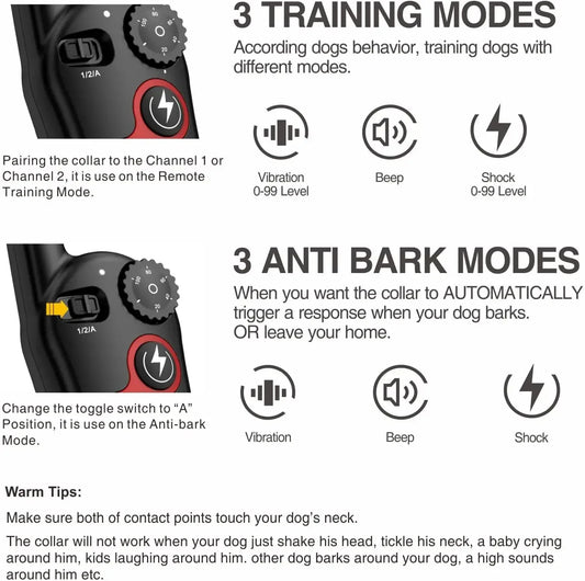 Dog Training Collar Remote Control Electric Shock Automatic Anti-Bark Collar w/3 Training Modes Beep Vibration Shock Waterproof