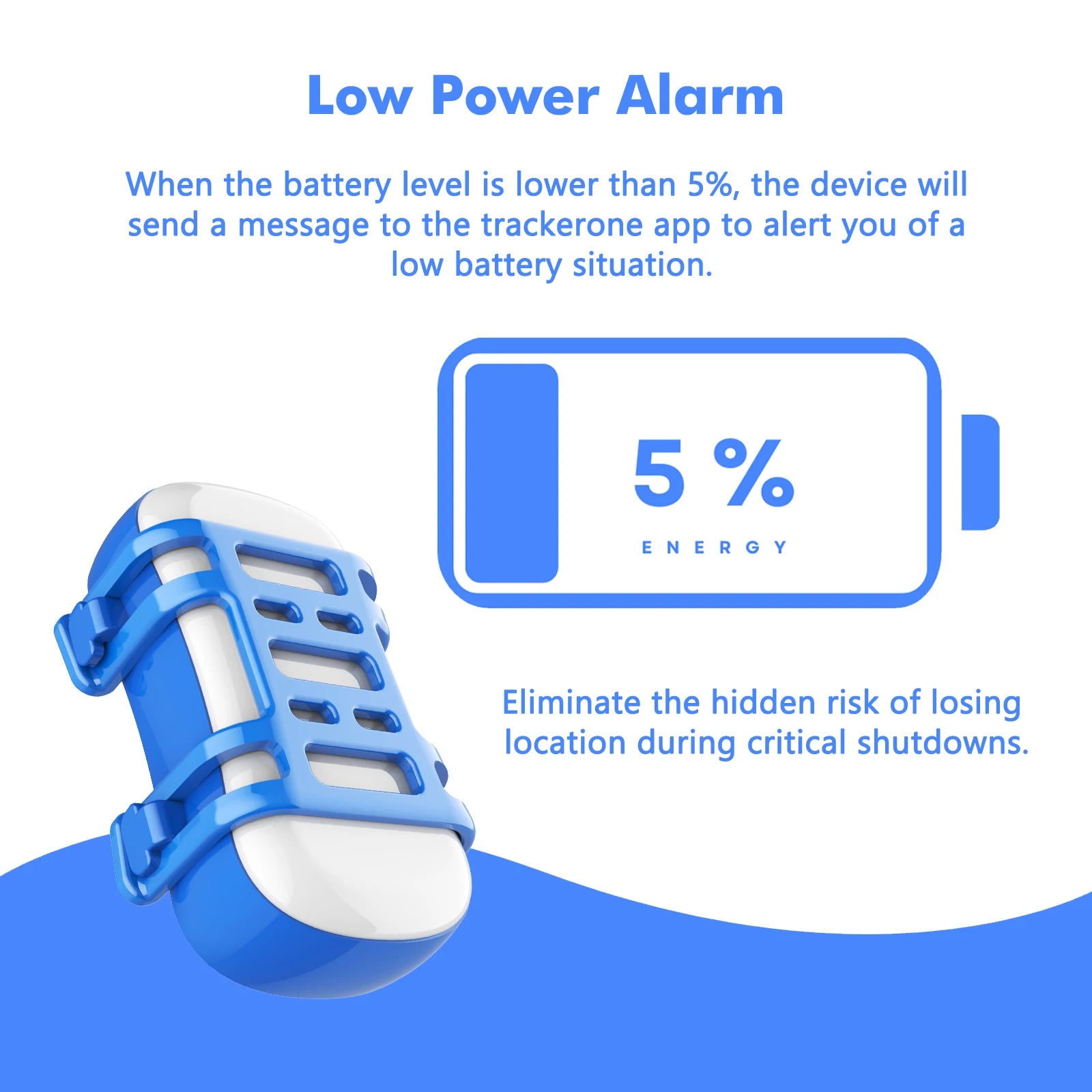 When the battery level is lower than 5%, the device willsend a message to the trackerone app to alert you of alow battery situation.