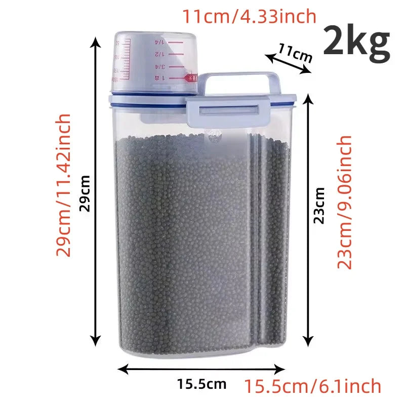 1.5kg/2kg Dog Cat Food Pail Plastic Storage Tank with Measuring Cup Container Moisture-proof Sealed Jar Pet Supplies Accessories