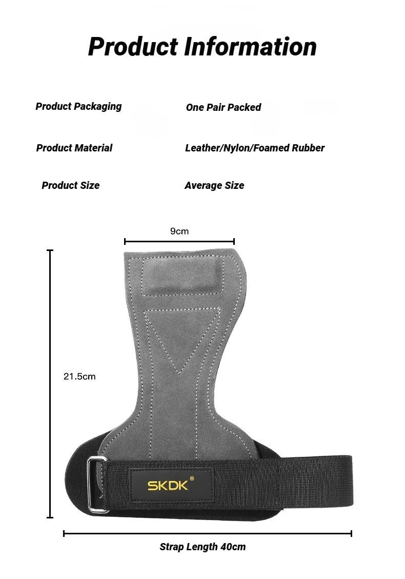 2Pcs Cowhide Gym Gloves Grips Anti-Skid Weight Power Belt Lifting Pads Deadlift Workout Fitness Palm Protection Training Guards