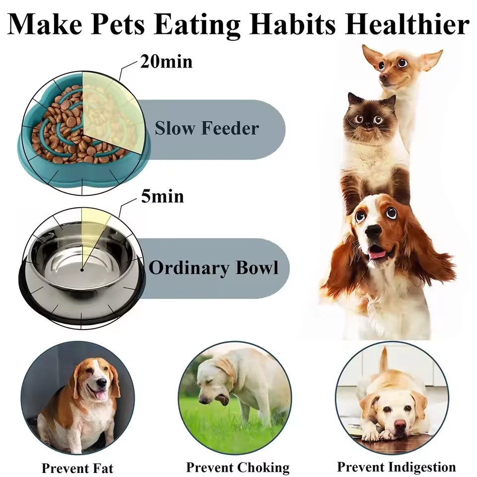 2. Slows down your pet's eating speed. The slow feeding bowl prevents pets from eating too quickly, reducing the risk of choking from swallowing too quickly.