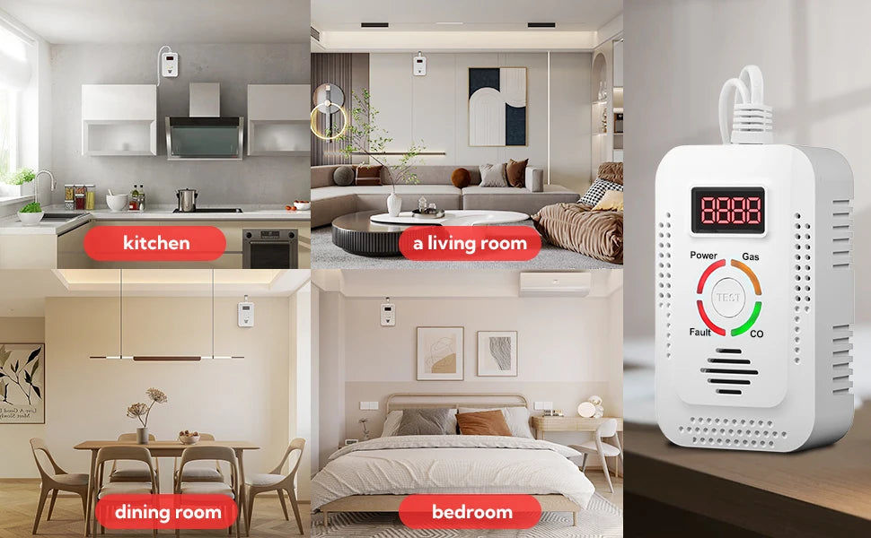 Powerful Quality & Functionality: Natural gas detector adopting high-quality semiconductor calefaction type sensor. More accurate response times to gas exposure, avoiding the possibility of false alarms. LCD display of combustible gas concentration, plug and play, the LED display concentration changes, and an alarm of 70 dB or more issues.