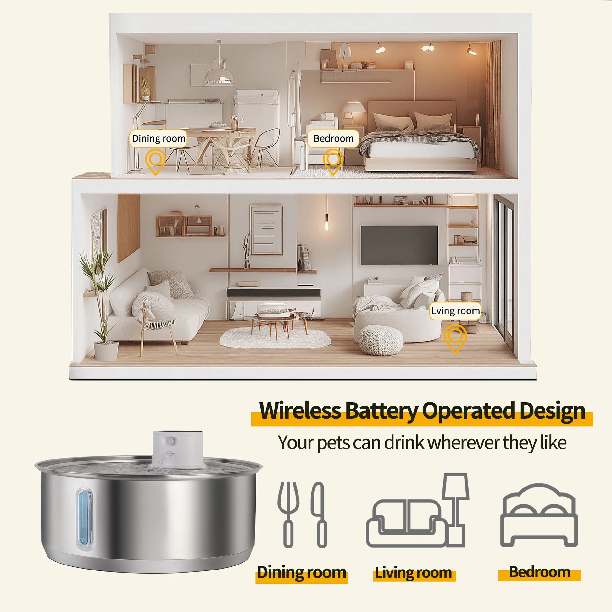 No limits of placing the fountain! You're able to put it wherever your pet feels comfortable to drink at any time!